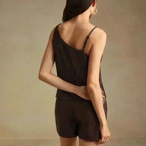 Merlot Preppy Women's Ruched Asymmetric Hem PU Sleeveless Top