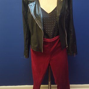 This Wine Velvet pull-on pants will surely slim down any problem areas. The side zipper makes it easy to get into. Add your favorite blazer or bomber jacket and you're ready for any occasion.