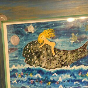 Mermaid Art Print Set Blue Ocean Coastal Decor Signed SenoraQ Mexico Framed. Condition is preowned. This professionally framed mermaid art print set features vibrant colors and a hand-painted wooden frame. (PM13)