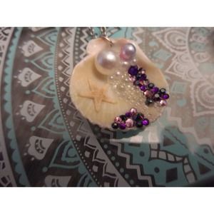 A handmade 20 inch Ursala inspired necklace from Disney's Ariel. A lovely white sea shell is filled with white faux pearls, a starfish, bubbles and a purple rhinestone jeweled tentacle reaching around the bubbles. This is a fun piece great for dressing up or down, and perfect for a gift. A wonderful statement piece and so beautiful to display natures jewels of the sea, looking like you got it straight from a mermaid. Pendant comes with a stainless steel hypoallergenic chain as shown in pictures. Please message me if you have any questions or offers. Thank you!! :)
