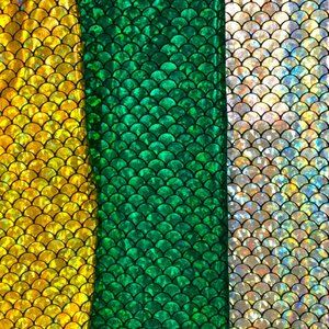 We are offering Mermaid / Fish Scale Holographic REFLECTIVE STRETCH Fabrics in Nylon Spandex 58/60" Wide. in 8 Colors