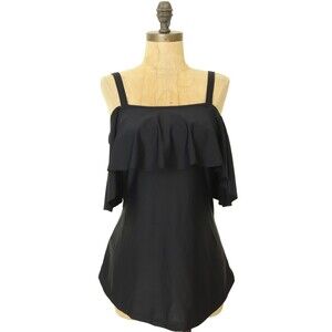 Mermaid Maternity Ruffle Bandeau Tankini Swim Top Size S Black NWD B59