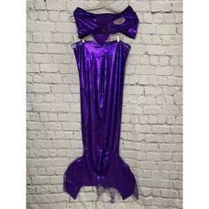 Handmade Mermaid / Merman Purple Sparkle 3 pc adult costume in Adult large / XL size. Was originally created for a Drama department production of Little Mermaid. Features a removable flower for hair, an elastic band top "fin", and a foam "tail" with netting cover and slit in back for feet. Some sequins are coming off, sold AS IS.