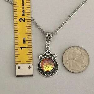 Mermaid Scale Beach Iridescent Round Circle Pendant Stainless Steel Necklace 1
