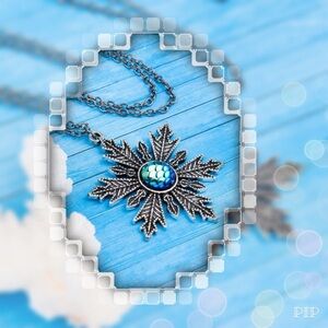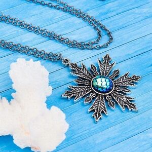 Mermaid scale snowflake necklace in gunmetal, approximately 22” long