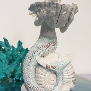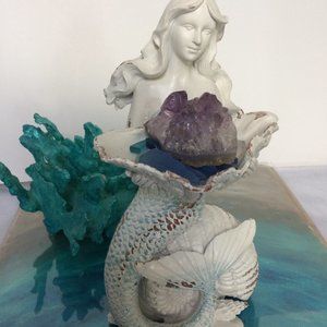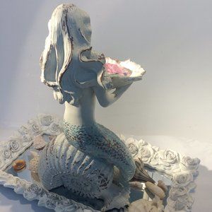 Listing is for Mermaid Sculpture only. The tray, shells and stones not included. I added some glitter to the mermaid fins to make give them a bit of sparkle. The last four photos was taken before I added the glitter to the fin area.