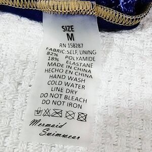 Make a splash in this stunning Mermaid Swimwear Blue Denim Print 2 Piece Bikini! The beautiful blue exterior color bikini set is a must-have for any beach or pool day. The bikini comes in a size medium with removable bikini top padding and a cheeky bottom. This bikini set completes the perfect beach look.