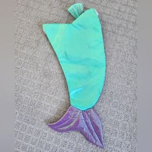 Enchanting mermaid tail stocking in blue and purple with a bow accent. Perfect for adding a whimsical touch to your decor.