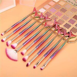 Mermaid Tail Makeup Brush Set 10 Pcs Eye Brushes Eyeshadow Concealer Brow Blend