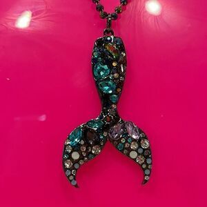 Mermaid Tale Bejeweled Purples and Blues Necklace, pendant with chain NEW 🧜♀️