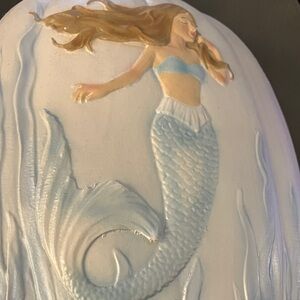 Enchant your home with this beautiful mermaid themed pumpkin holiday decor. Featuring a serene mermaid design, this piece adds a touch of magic to your holiday decorations. The elegant white and blue colors create a calming and festive atmosphere. Great for whimsical Halloween Decor or Peaceful Thanksgiving piece 🧜🏼♀️ NWOT