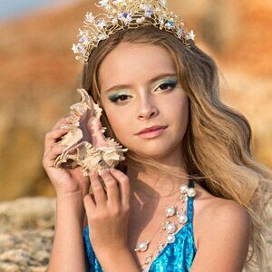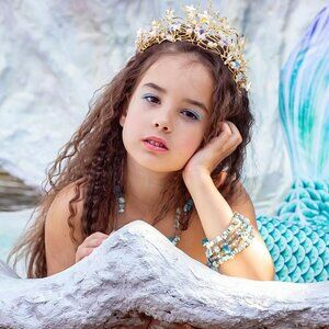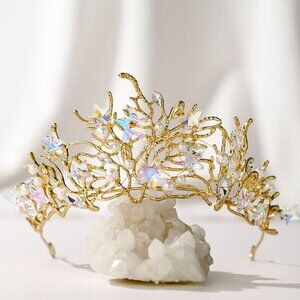 Mermaid Tiara for Girls Women, Gold Princess Crown Diadem, Jeweled Headpiece Cos