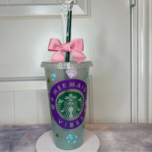 Mermaid Vibes Custom Reusable Starbucks 24oz Cold Cup Coated in Epoxy Resin