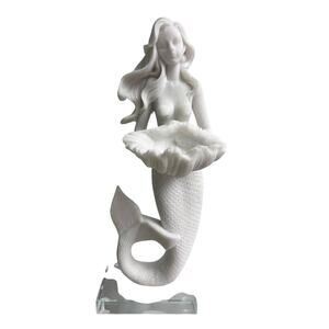 Mermaid White Sparkle Stone Crystal Statue Sculpture Figurine With Base 12”