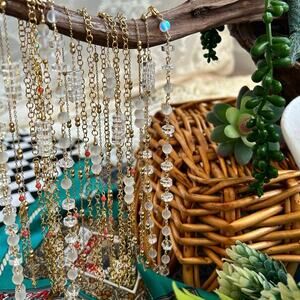 Handmade by outer banks local. These mermaid beads shine like no other in the summer sun. They are truly mesmerizing. Accompanied by clear quartz and all hand wire wrapped together with love by myself for you to wear this summer and feel like the goddess you are.