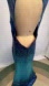 Mermaid hourglass watery teal sequin formal dress prom gown open plunge back y2k