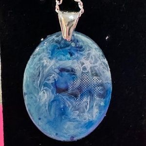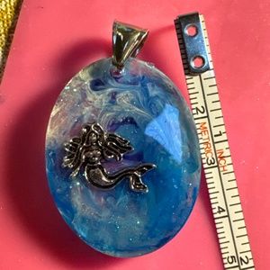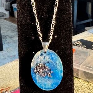 Beautiful resin mermaid pendant necklace with matching earrings.