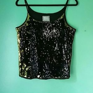 With a brush of your hand you can change a gold cami into a black...pair with skinny jeans and heels. Make an offer