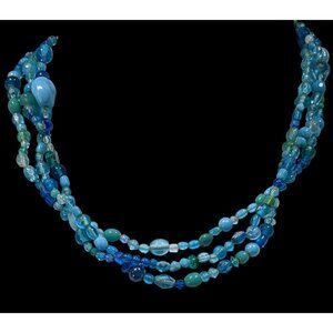 Mermaidcore Handmade Blue Glass Beaded Layered Necklace