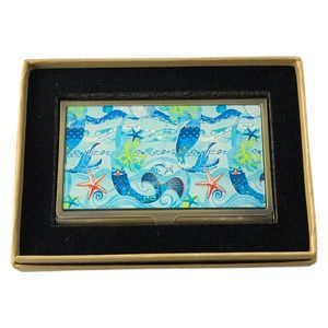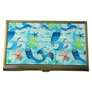 Mermaids & Starfish Business Card Holder Nautical, Brass & Glass Case, Gift Box