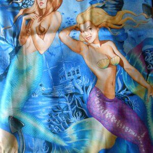 Mermaids in Bright Blue, Over 1 Yard, 100% Cotton, FREE Shipping!!