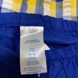 I still have all the tags for this dress. Never worn. This dress is new. The tags just well off the dress itself when unpacking. The diaper cover/bloomers still have the tag attached. This dress has a beautiful sunflower on it, and bright blue and yellow-checkered pattern. Size 12 months. I would say it runs on the larger side.