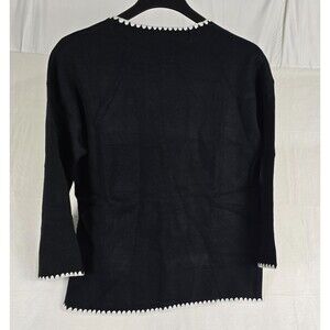 Merokeety Black Knit Cardigan Jacket Women’s Medium Blend Contrast Trim Buttons