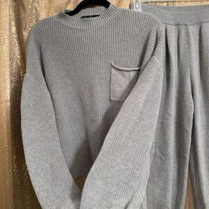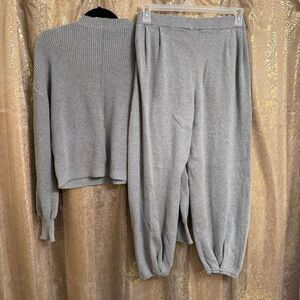 Merokeety Heather Gray Ribbed Winter Sweater Pants Lounge Sleep Set Large