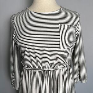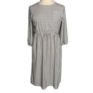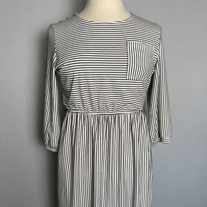 Merokeety Midi Black & White Stripe Dress, Sz L, 3/4 Sleeves, Pockets NWOT 2/$25