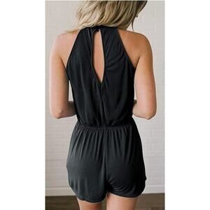 Merokeety Romper Womens Small Black Halter Neck Gothic Witchy EMO Casual NWT Retails: $34.99 Pockets