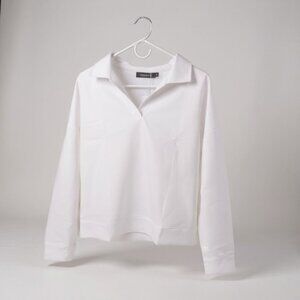 Merokeety V-Neck Sweatshirt Women Small White Long Sleeve Lapel Casual Pullover