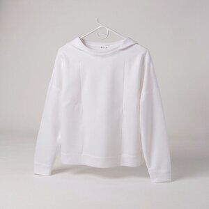 This women's white sweatshirt is a stylish and comfortable pullover with a V-neck design, perfect for casual occasions like traveling, activewear, or everyday wear. Made of a polyester viscose elastane blend fabric, it is easy to care for, wrinkle-resistant, water-resistant, and breathable, making it suitable for all seasons. The small and regular fit provide a comfortable and flattering look, while the solid white color adds a pop of color to your outfit. With a classic and fashion-forward style, this sweatshirt is a versatile addition to your wardrobe.