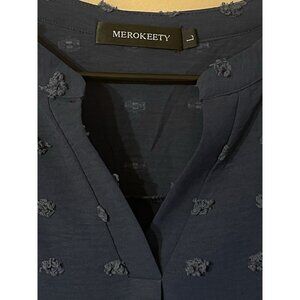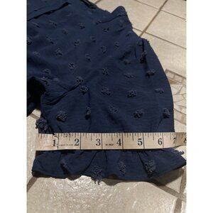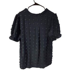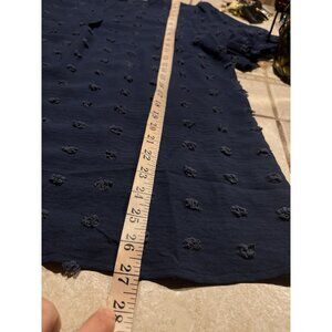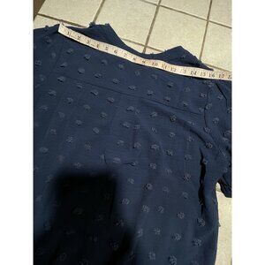 Merokeety Womens Blouse Navy Swiss Pom Pom Dot Short Sleeve Tunic Top Size L