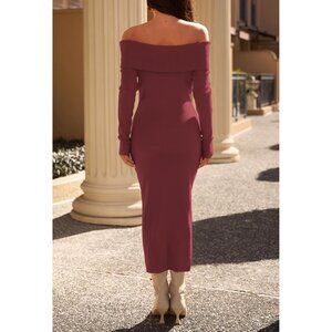 Merokeety Women's Burgundy Off Shoulder Long Sleeve Elegant Bodycon Midi Dress
