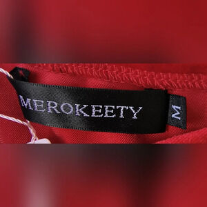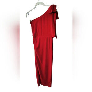 Merokeety Women's Festive Holiday Christmas Day Red Velvet One Shoulder Maxi Party Dress, M, NWT, the shoulder has a bow, zipper on the side, high slit in the front