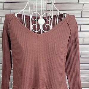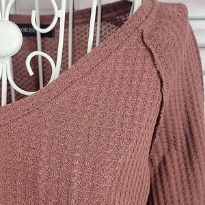 The fabric tag is missing, but probably an acrylic yarn in a lightweight knit by Merokeety. It's fitted long on the waist with a skater skirt hemline and lace trim. Great pre-owned condition.