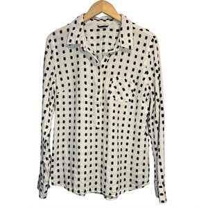Merona 100% Cotton Black and White Checkered Women's Half Button Top