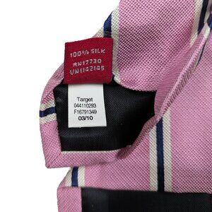 Merona 100% Silk Petal Pink Tie with Navy and White Slanted Stripes