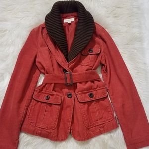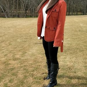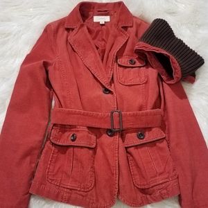 Corduroy Jacket, three pockets, belt, detachable neck