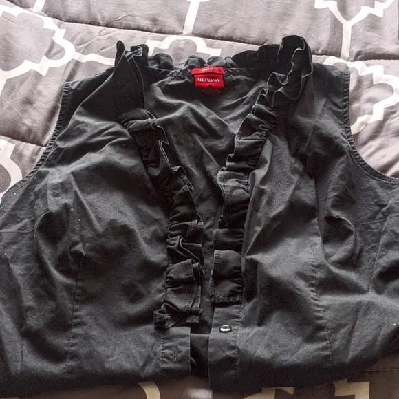 Never have worn this brand before so not sure exactly what this is called but it's like a vest type of over shirt. It's black, size small. Has no buttons for closure. Very nice over shirt.