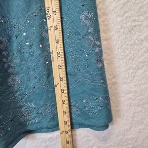 Merona A-Line Skirt Sz 18W Teal Linen Blend Skater Sequin Boho Summer Classic