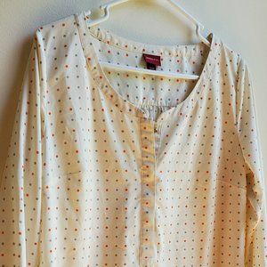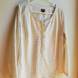Merona Beige Polka Dot Blouse Size Medium. Single button at the top. Like new!