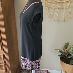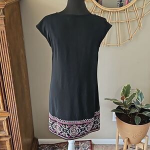 Merona Black Sleeveless Shift Dress with Embroidered V Neck and Hem Sz S