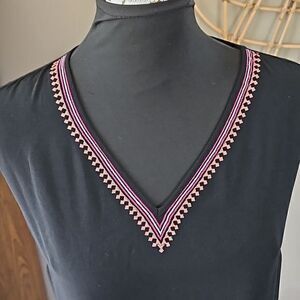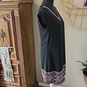 Merona Black Sleeveless Shift Dress with Embroidered V Neck and Hem