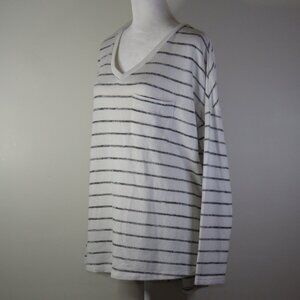 Merona Women's Black & White Striped Long-Sleeve V-Neck Pullover Sweater Size L (C1546)