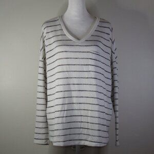 Merona Black & White Striped Long-Sleeve V-Neck Pullover Sweater Size L (C1546)
