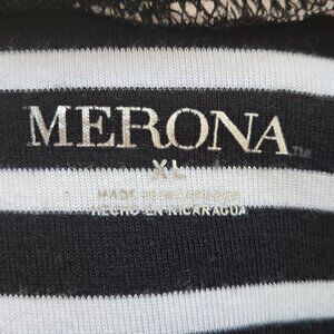 Merona Black & White Striped Turtleneck Top XL – 3/4 Sleeve Stretch Knit