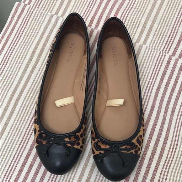 Merona Black and Brown Leather Flats with Bow Detail