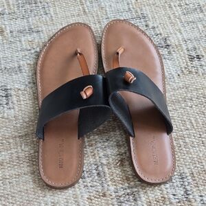 Stylish Merona sandals. Black strap with tan sole. Comfortable and chic.