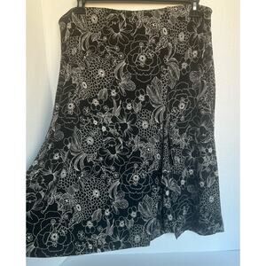 Merona Black and White Floral Ruffle Front Slit Skirt Size XL